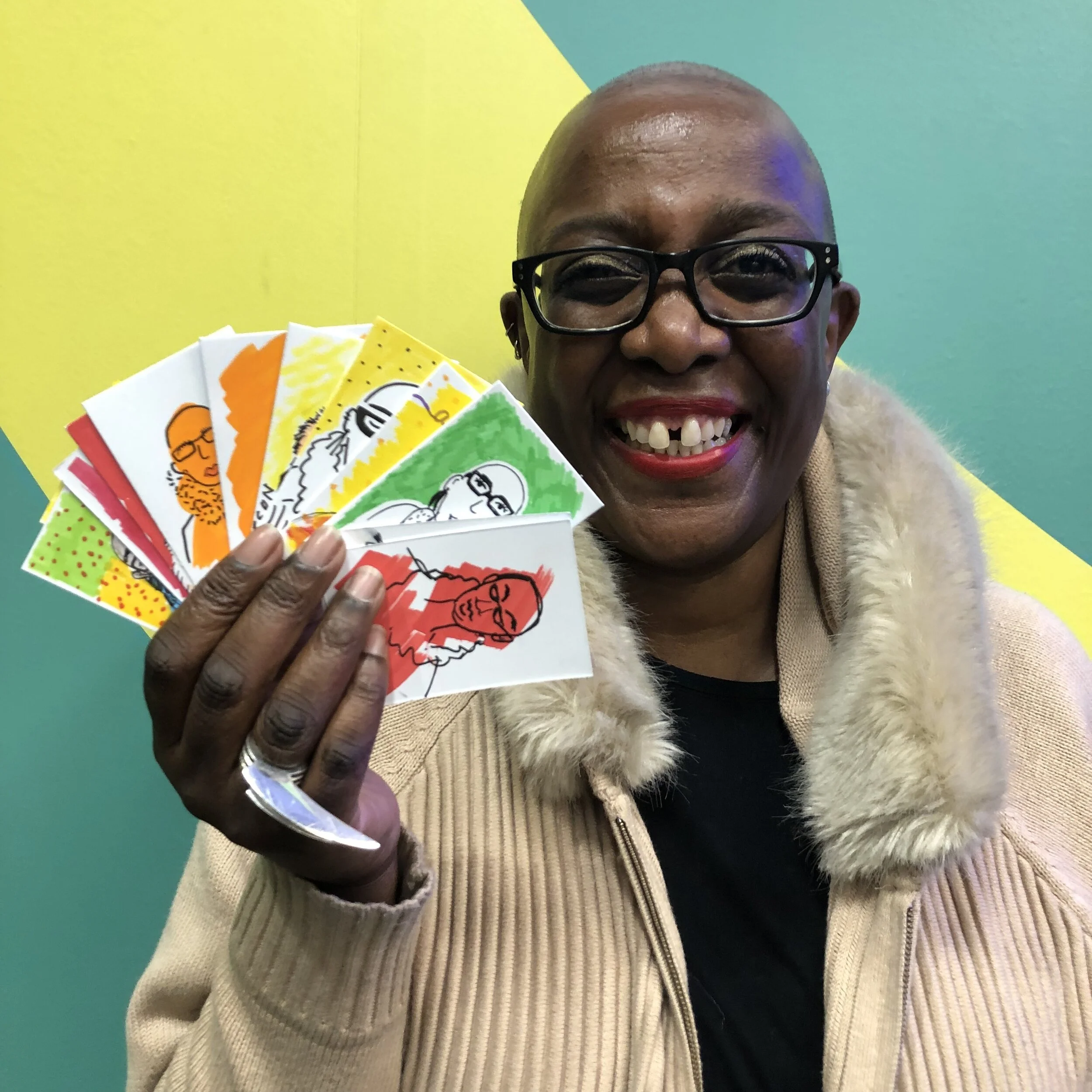 The format of Sketchy Bitches was born by accident, at our first ever meetup in January 2018. Dulcie (our Founder) loves a portrait, so brought some blank business cards along thinking it could be fun to draw each other on them, then exchange them at the end. Initially the plan was to set different prompts each month, but people loved these mini portraits so much the format kinda stuck!
